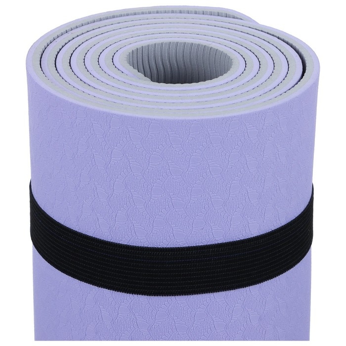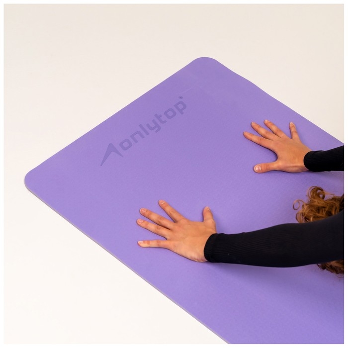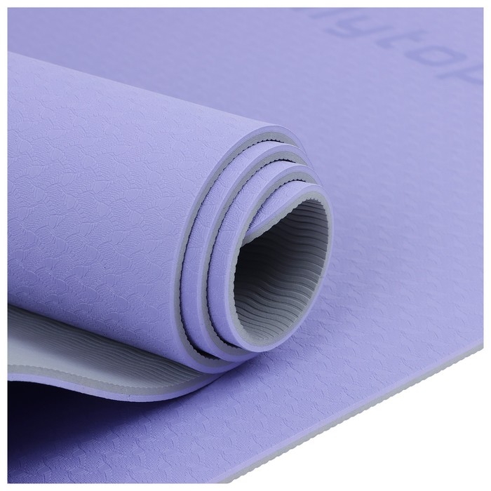 Коврик для фитнеса и йоги ONLYTOP, 183х61х0,6 см, цвет серый/фиолетовый