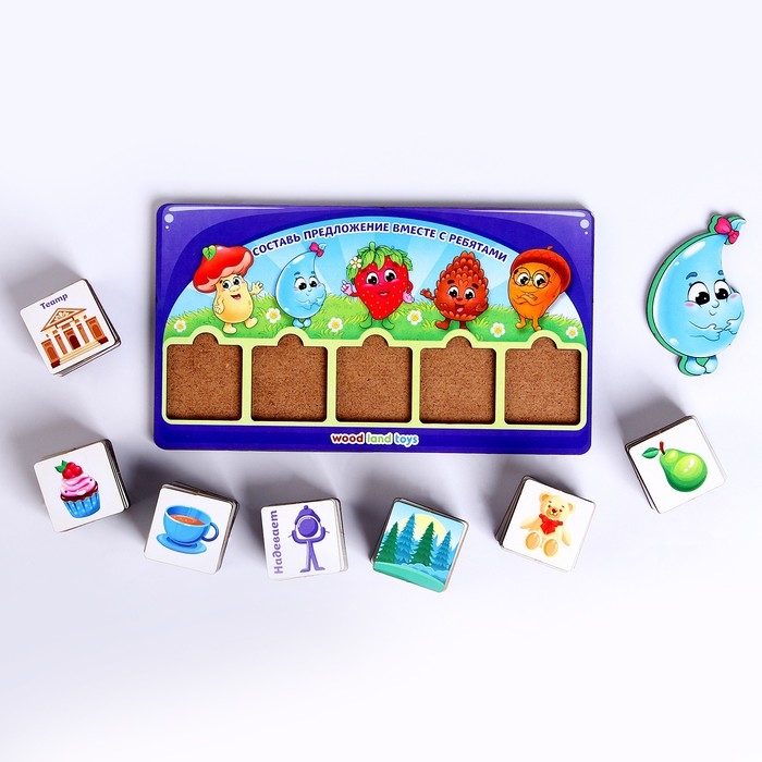 Обучающая игра «Составь предложение» захватывает внимание малыша и вызывает интерес, так как имитирует деятельность взрослого. Набор обогащает речь малыша, позволяет увеличить словарный запас и освоить навык построения предложений, а также знакомит с предлогами через поэтапный игровой процесс, возможный в любых условиях: как дома, так и в дороге.
