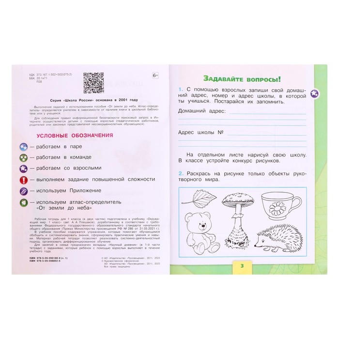 Рабочая тетрадь «Окружающий мир 1 класс», В 2-х частях, Ч.1, Плешаков А. А., 2024