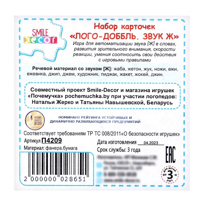 Набор карточек «Лого-доббль. Звук Ж»