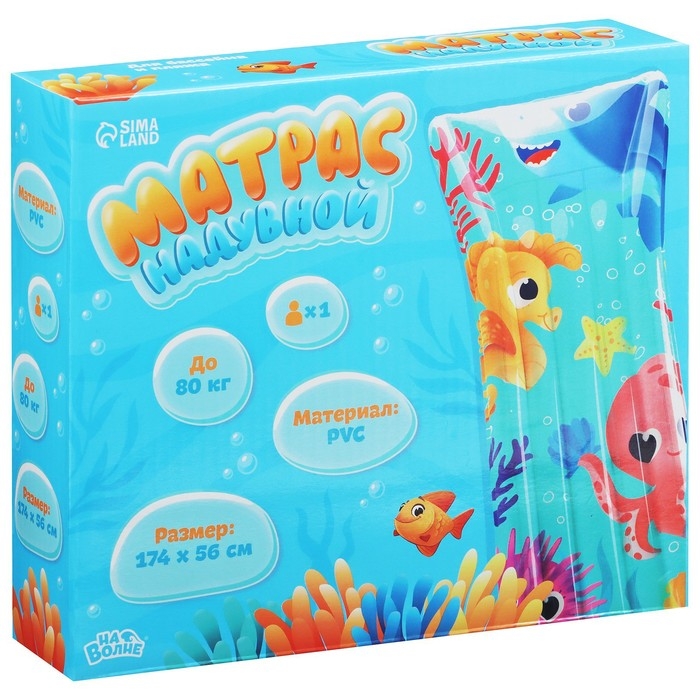 Матрас пляжный «На волне: Морской мир», 174х56 см