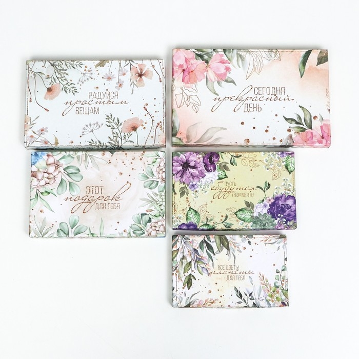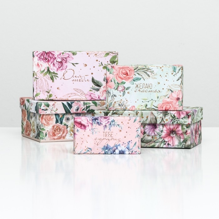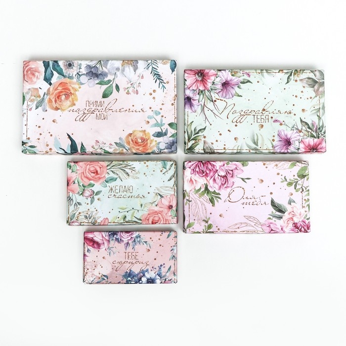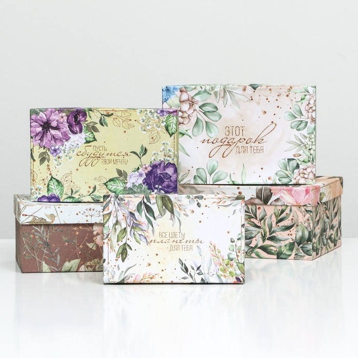 Набор шляпных коробок 5в1 "Цветочный", 20 × 20 × 20‒14 × 14 х 14 см