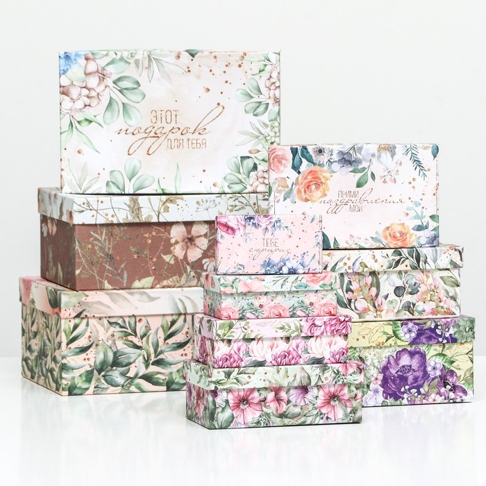 Набор коробок 10 в 1, упаковка подарочная, «Нежный», 12 х 7 х 4 - 32.5 х 20 х 12.5 см