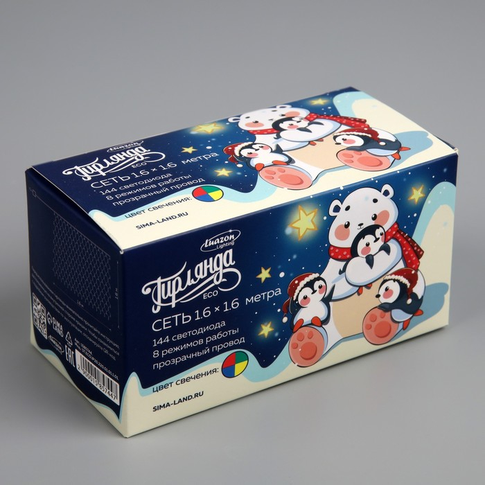Гирлянда «Сеть» 1.6 × 1.6 м, IP20, прозрачная нить, 144 LED, свечение мульти, 8 режимов, 220 В