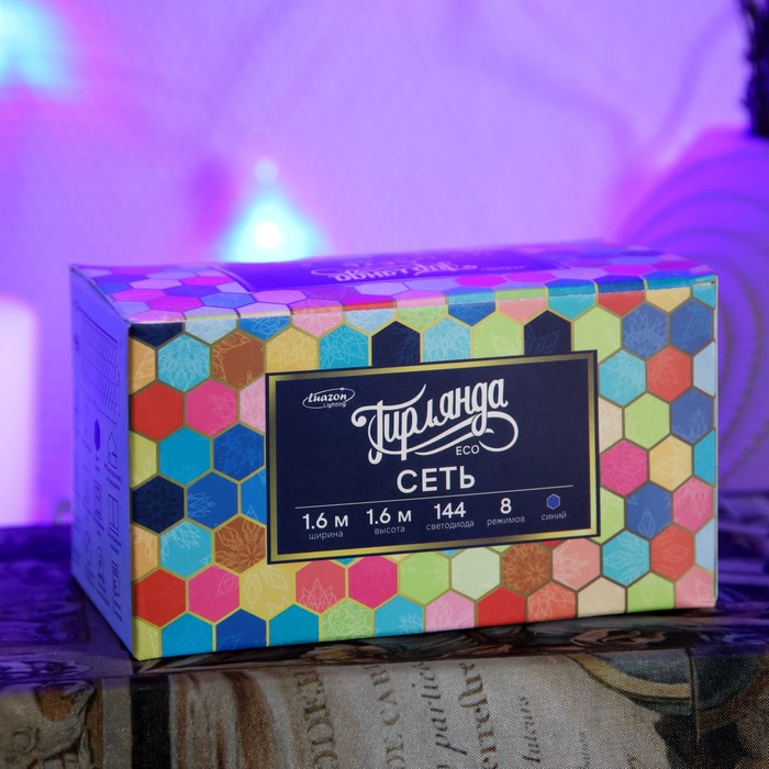 Гирлянда «Сеть» 1.6 × 1.6 м, IP20, прозрачная нить, 144 LED, свечение синее, 8 режимов, 220 В