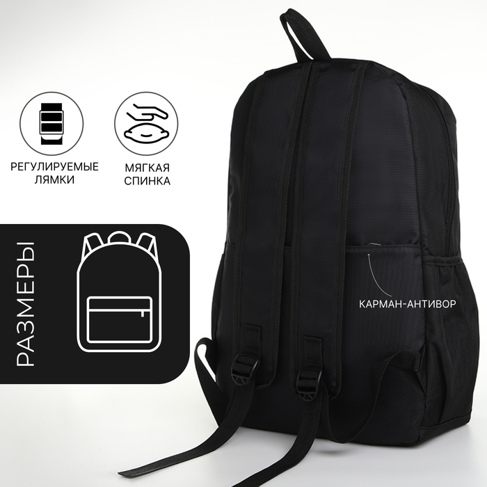 Рюкзак школьный на молнии, наружный карман, цвет чёрный