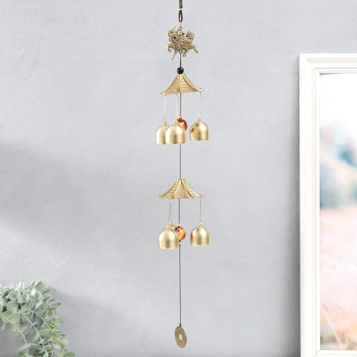 Музыка ветра металл "Дракон" 6 колокольчиков под бронзу 45 см