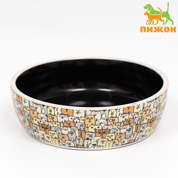 Миска керамическая "Графичная Собаки" 300мл, 12 х 3,5 см, бежево-черная