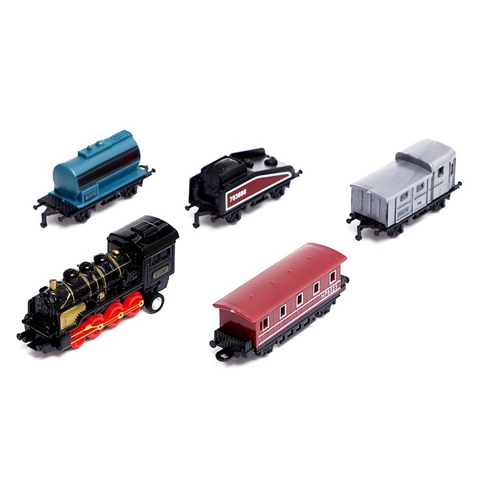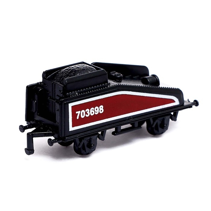 - Корпус поезда изготовлен из прочного металла, который не ломается и не царапается. Остальные элементы локомотива и вагоны выполнены из пластика.