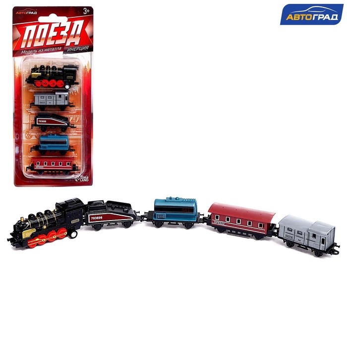 Поезд металлический «Классика», с 4 вагонами, инерция, МИКС