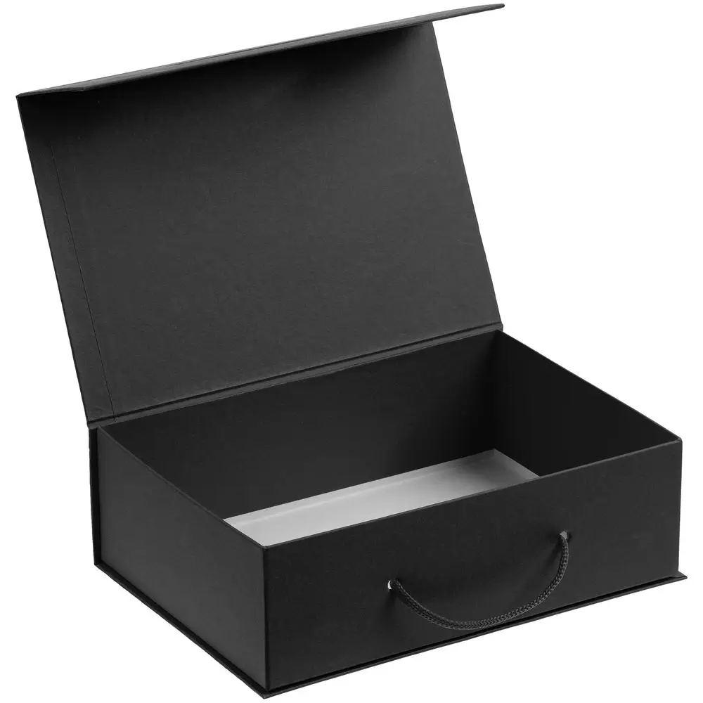 Коробка выполнена из переплетного картона, кашированного гладкой дизайнерской бумагой Kiris, с крышкой на магните.