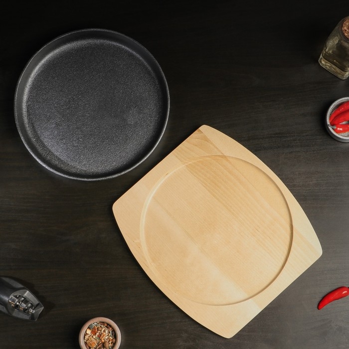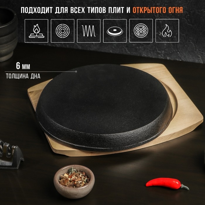 Сковорода чугунная на деревянной подставке Magma «Круг», 25×3 см, индукция, цвет чёрный