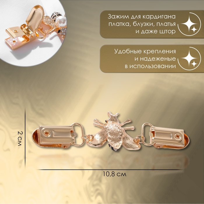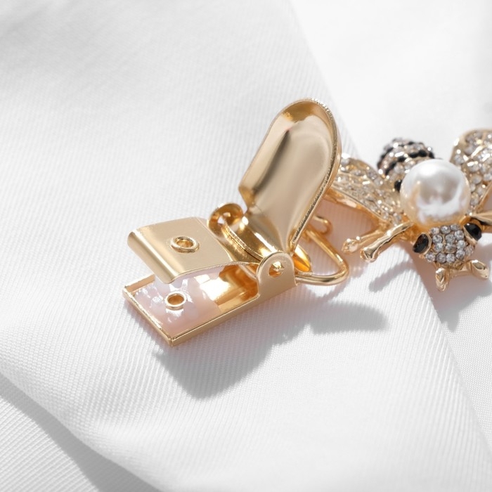 Зажим для кардигана «Шмель», цвет чёрно-белый в золоте