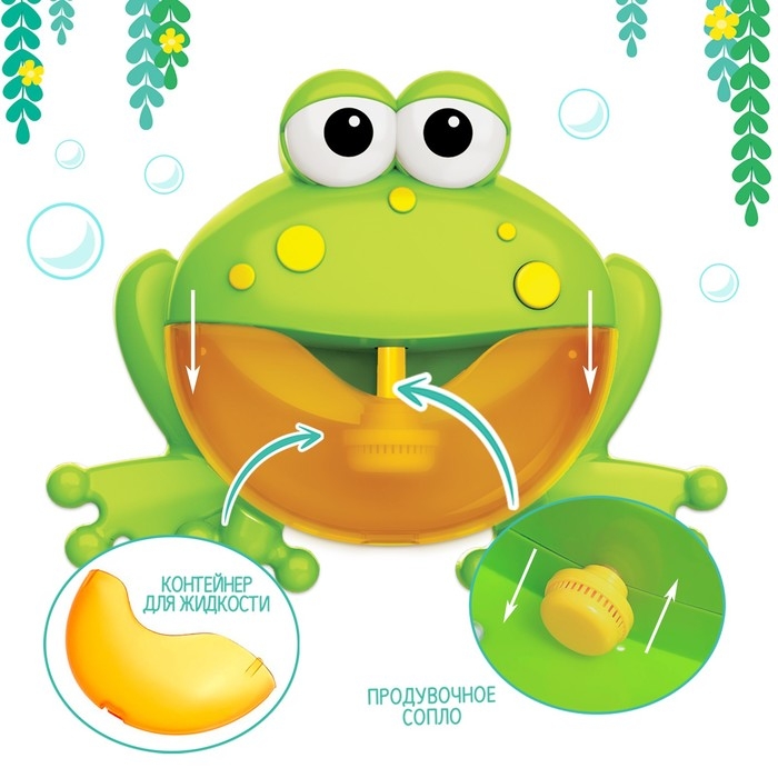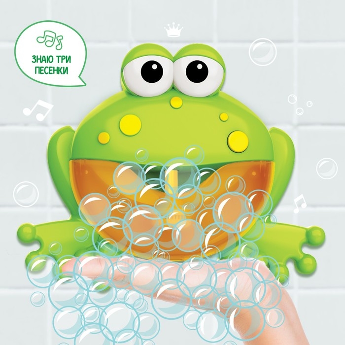 - Закрепите игрушку на стене ванны на присоски и нажмите на кнопку включения. Игрушка начнёт проигрывать весёлые песенки и генерировать большое количество мыльной пены.