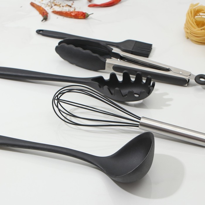 Набор кухонных принадлежностей Доляна «Лиам», 7 предметов, 33×12,5×12,5 см, цвет чёрный