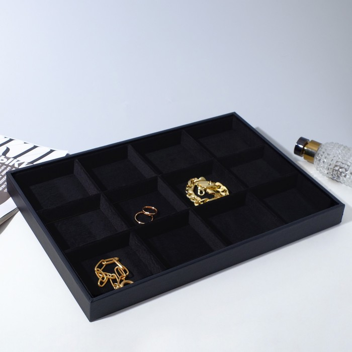 Подставка для украшений 12 ячеек, флок, 35×24×3, цвет чёрный