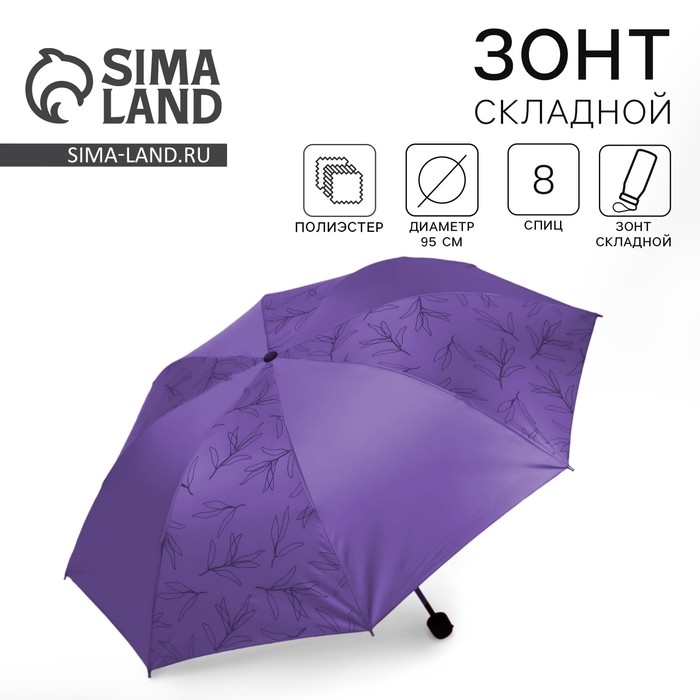 Зонт женский механический «Веточки», 8 спиц, d=95, цвет сиреневый