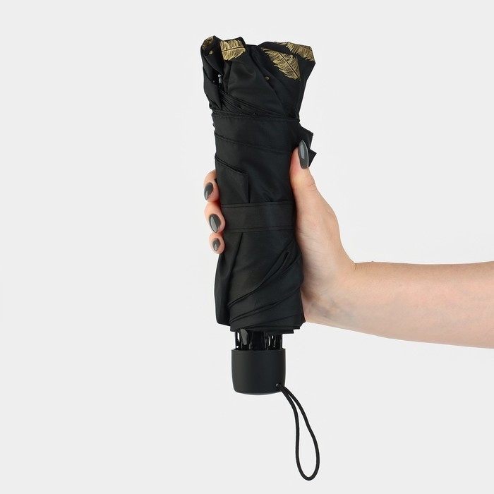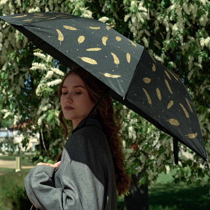 Зонт женский механический «Золотые перья», 8 спиц, d=95, цвет чёрный