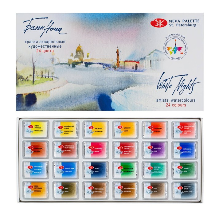 Акварель художественная в кюветах, 24 цвета х 2.5 мл, ЗХК "Белые ночи", 1941061