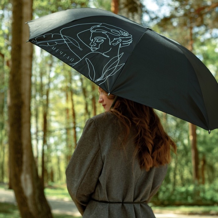 Зонт женский механический «Мечтай!", 8 спиц, d=95, цвет чёрный