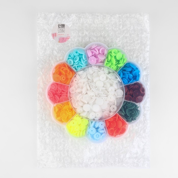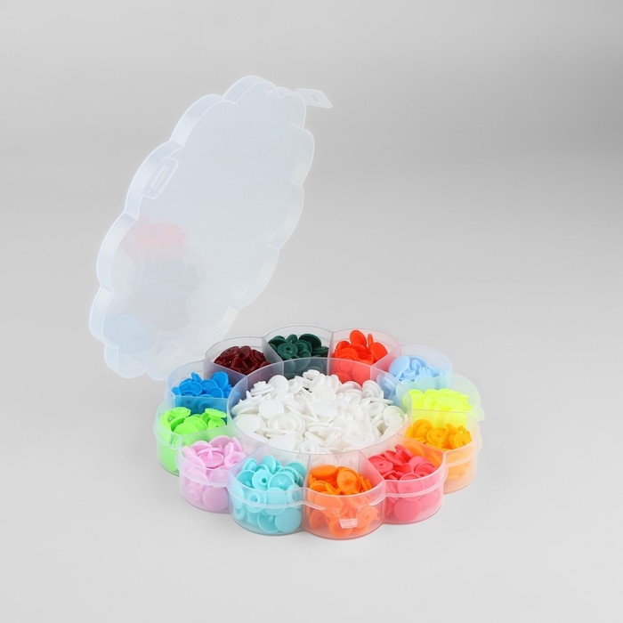 Кнопки рубашечные, открытые, в органайзере, d = 9,5 мм, 200 шт, цвет разноцветный
