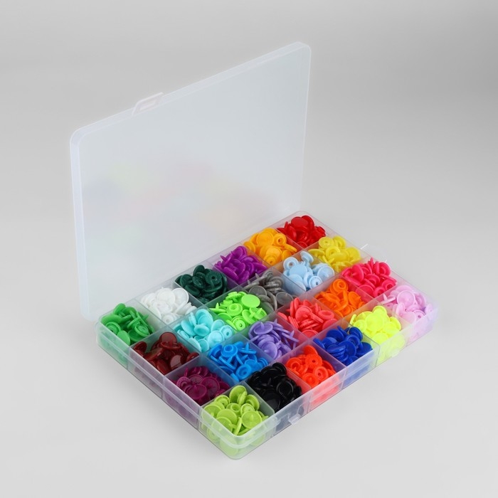 Кнопки рубашечные, открытые, в органайзере, d = 9,5 мм, 200 шт, цвет разноцветный