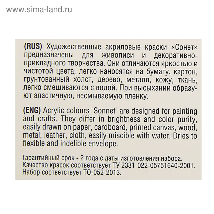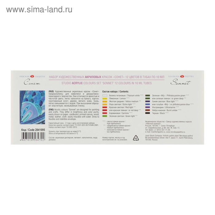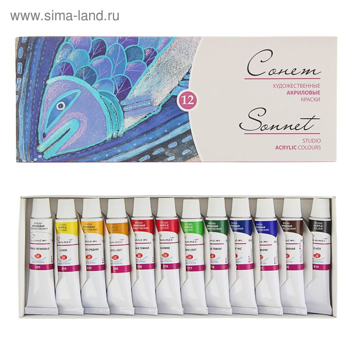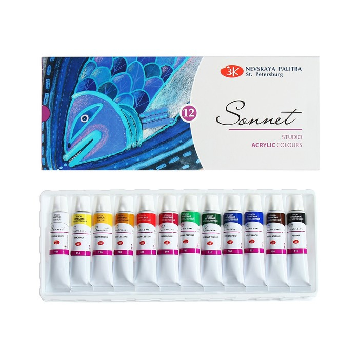 Краска акриловая в тубе, набор 12 цветов х 10 мл, ЗХК "Сонет", художественная, 2841095