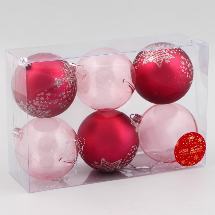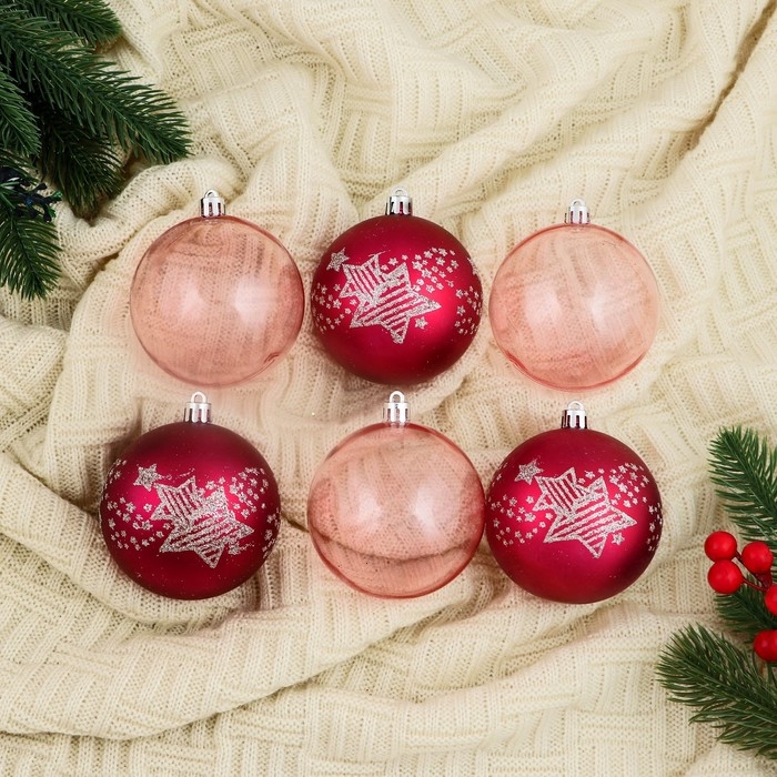 Набор шаров пластик d-8 см, 6 шт "Ночка" звёзды, розовый