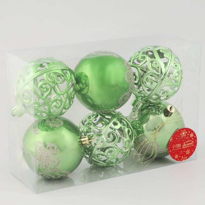 Набор шаров пластик d-8 см, 6 шт "Эстер" узор, зелёный