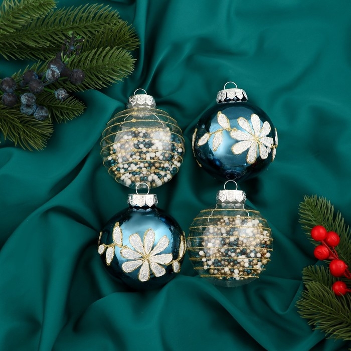 Набор шаров пластик d-8 см, 4 шт "Вивьен" бело-синий