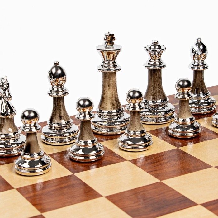 - Шахматы имеют стильный цветовой дизайн - комбинацию серебра и черной бронзы, которая добавляет набору штрихи элегантности и роскоши.