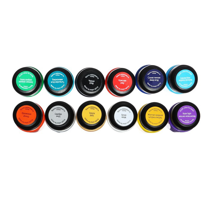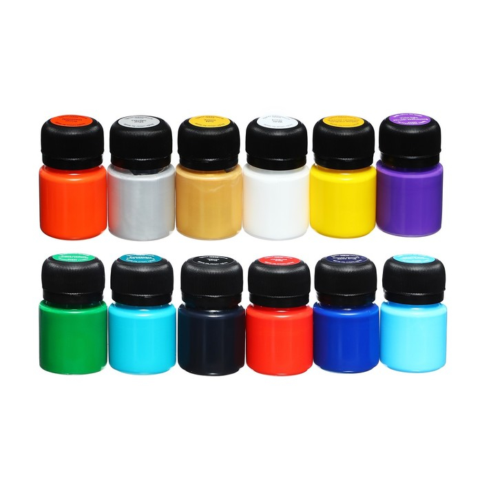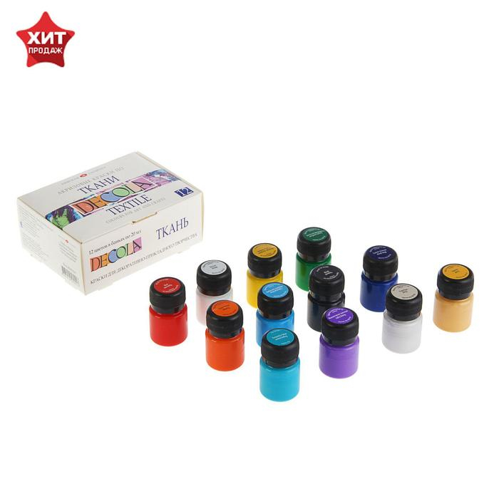 Краска по ткани, набор 12 цветов х 20 мл, ЗХК Decola, акриловая на водной основе, (4141216)