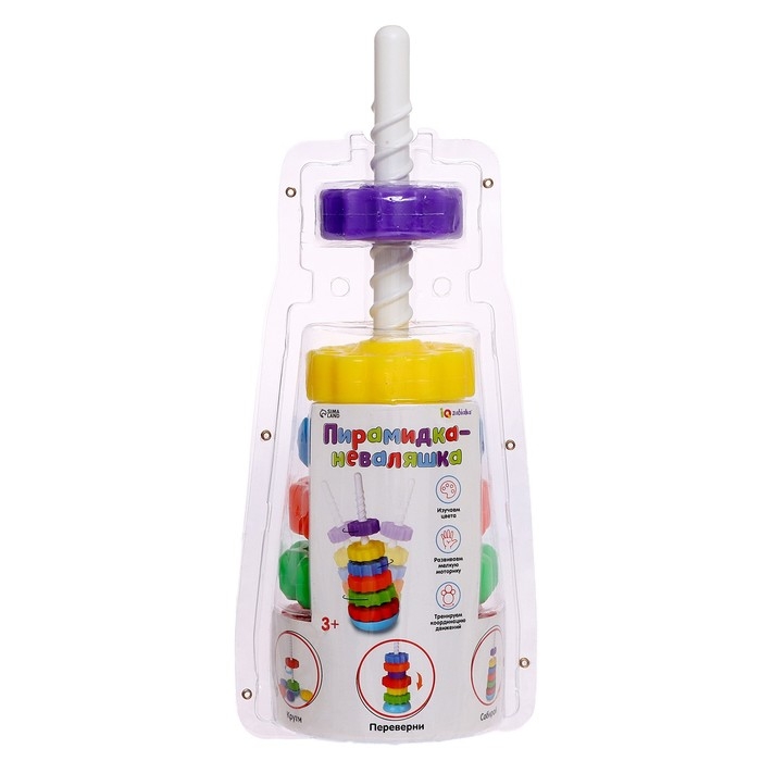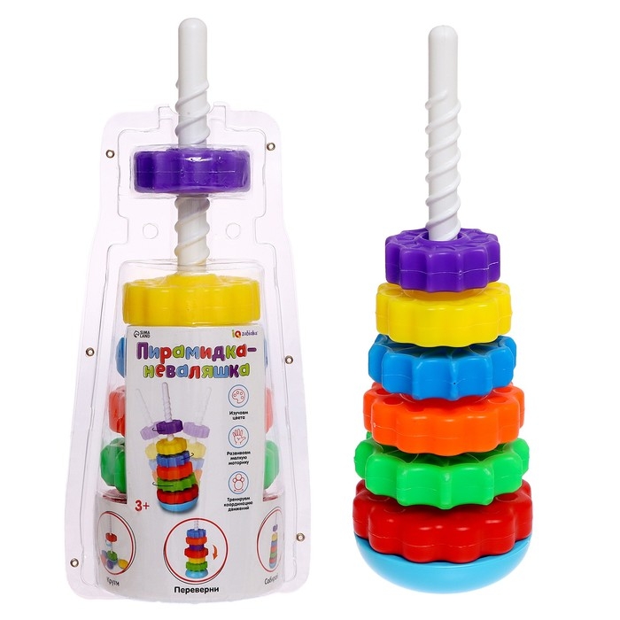 Пирамидка «Неваляшка» разработана специально для малышей от 3 лет. Игрушка состоит из шести ярких фигурок разных размеров, которые необходимо накручивать на особый винтовой стержень.