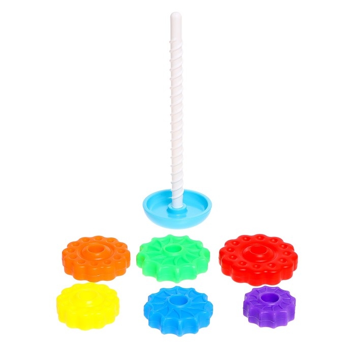 - Собирайте пирамидку с самого большого кольца, закончив самым маленьким.