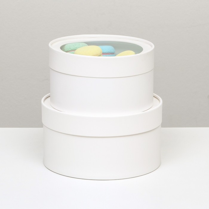 Набор 2 в 1 круглых коробок "Белая" с окном, 21 х 11 - 18 х 10 см