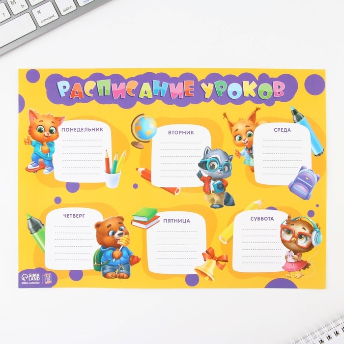 - Расписание уроков, А4 - 1 шт.;
