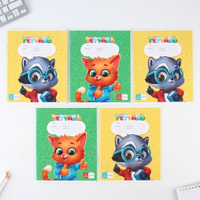 - Тетрадь, А5,12 листов, клетка - 5 шт.;