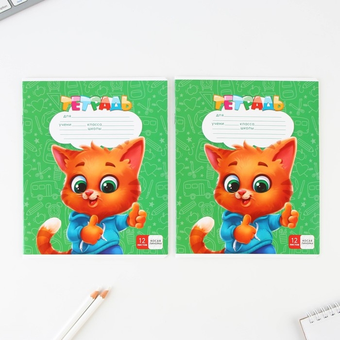 - Тетрадь, А5,12 листов, косая линия - 2 шт.;