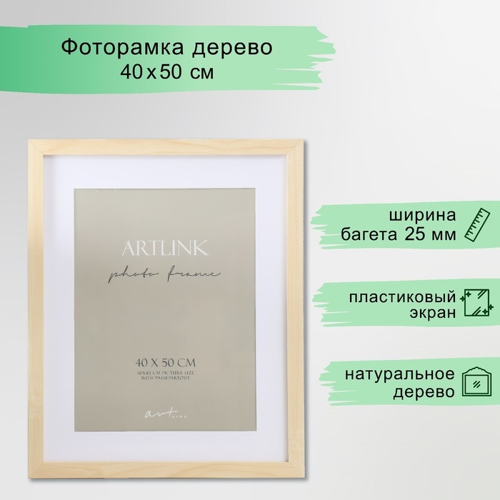Фоторамка МДФ "Ellis" 40х50 см, с паспарту, натуральный (пластиковый экран)