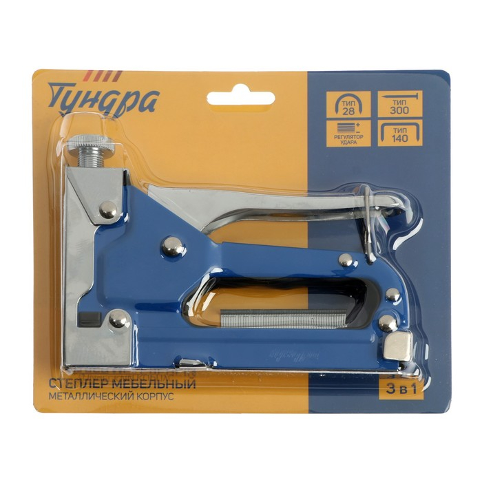 Степлер мебельный ТУНДРА, 3 в 1, металлический корпус, типы скоб 140/28/300, 4 - 14 мм