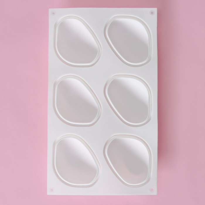 Форма для муссовых десертов и выпечки Доляна «Стоун», силикон, 30×18×3 см, 6 ячеек (9,5×7 см), цвет белый