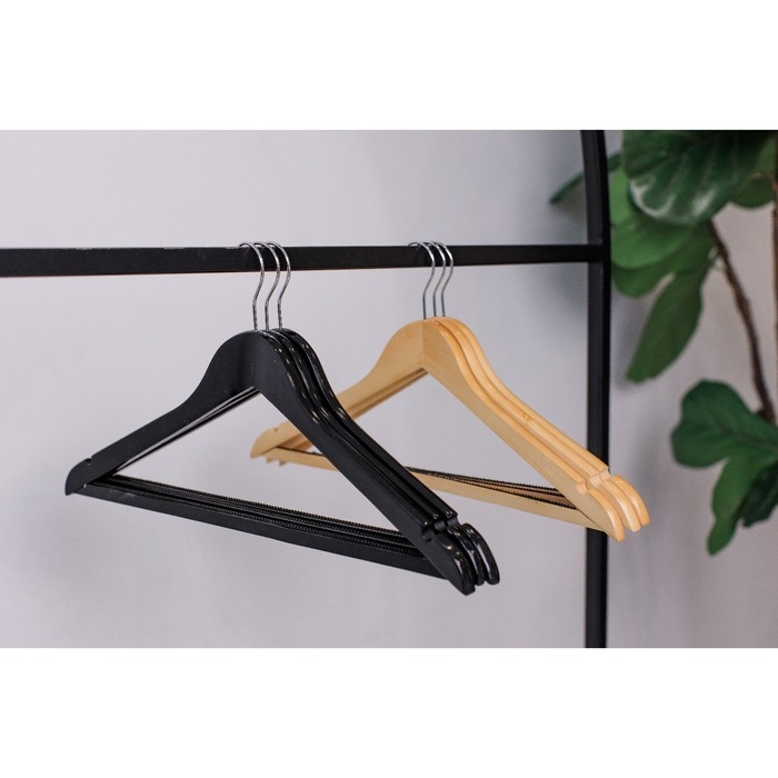 Плечики - вешалки для одежды Доляна, 43×23 см, 3 шт, антискользящая перекладина, цвет чёрный