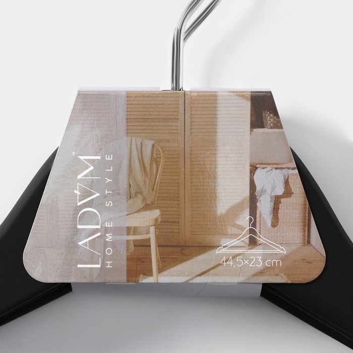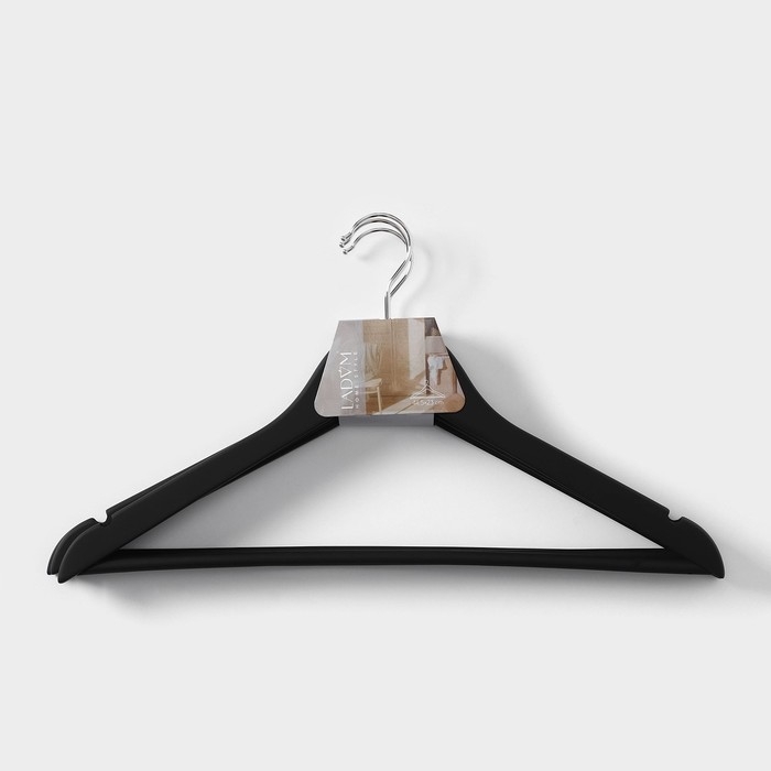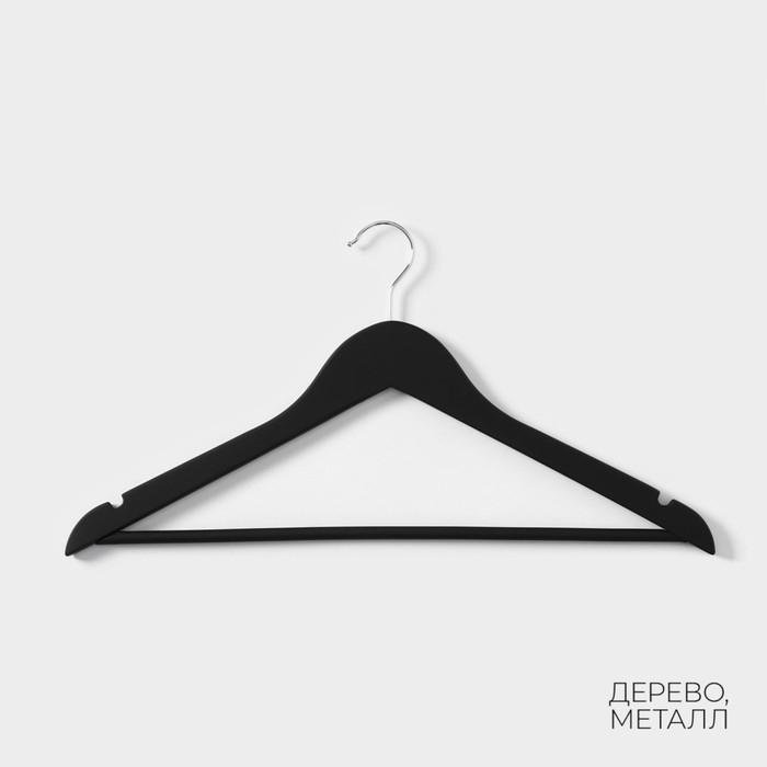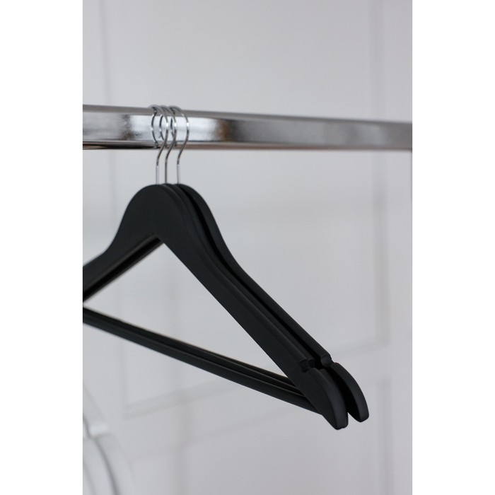 Плечики - вешалки для одежды LaDо́m Soft-Touch, 44,5×1,2×23 см, 3 шт, деревянные, с перекладиной, широкие плечики, цвет чёрный
