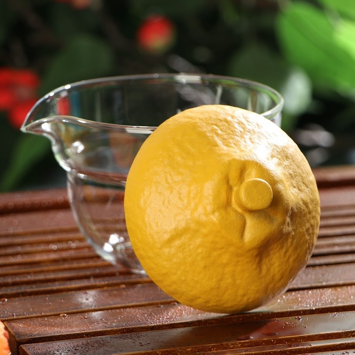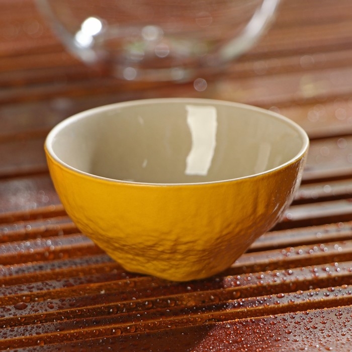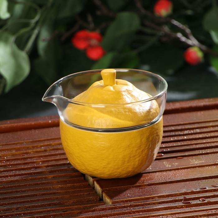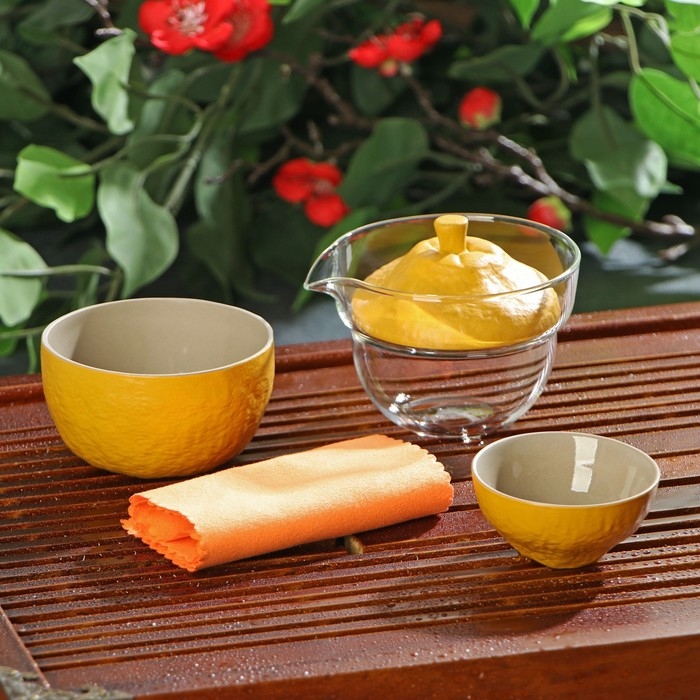 Набор для чайной церемонии керамический «Лимон», 6 предметов: стеклянная чаша с крышкой 210 мл, 2 керамические чаши 40 мл и 150 мл, салфетка, сумка, цвет жёлтый