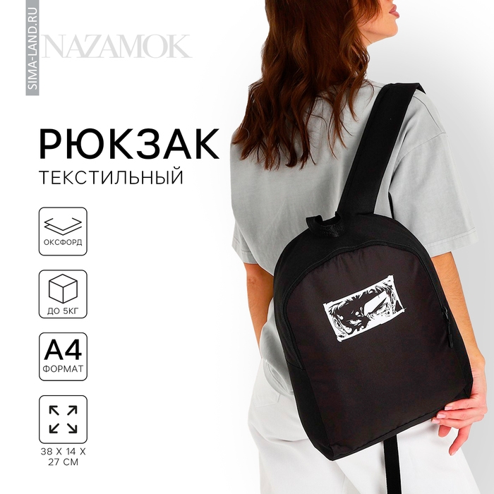 Рюкзак школьный текстильный «Аниме», 38х14х27 см, цвет чёрный
