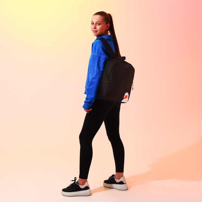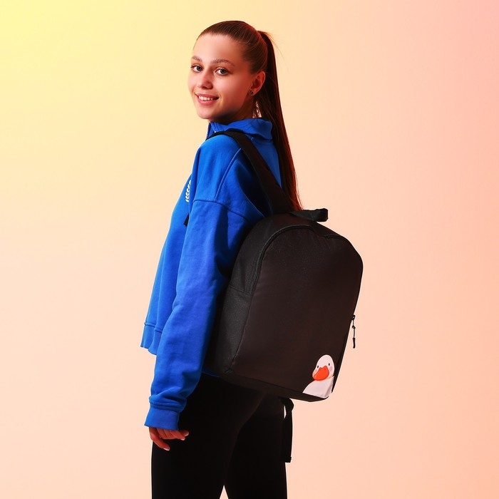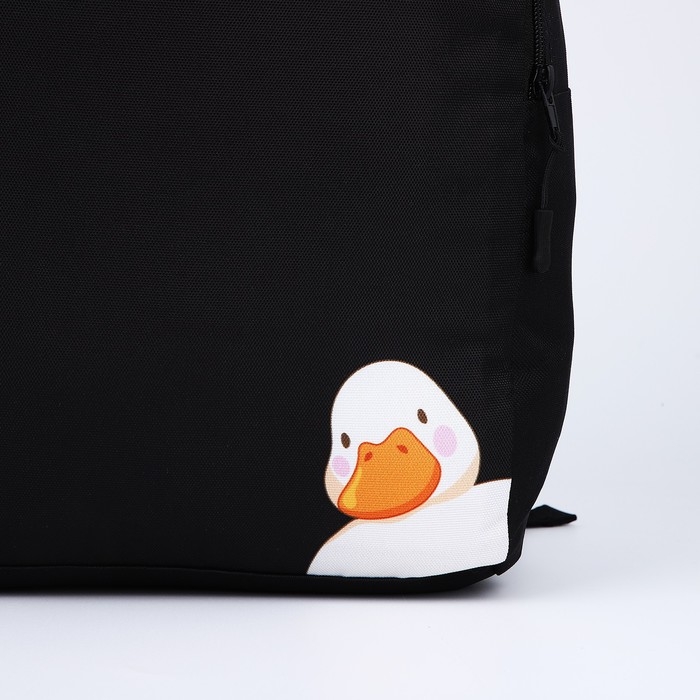 Рюкзак школьный текстильный «Утка», 38х14х27 см, цвет чёрный
