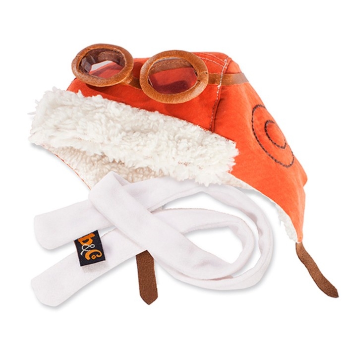- На Басике лётный шлем из рыжей искусственной замши на белом меху. В комплекте — длинный шарфик из белоснежного софта.