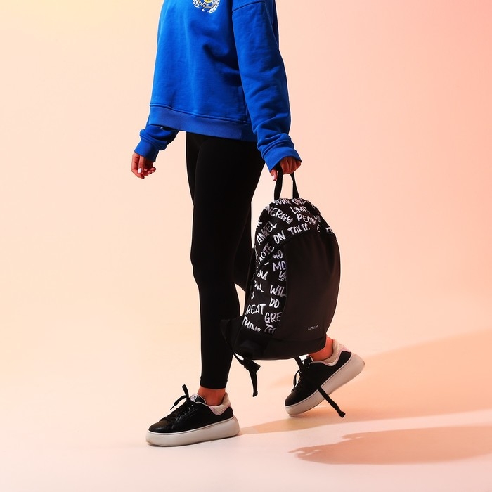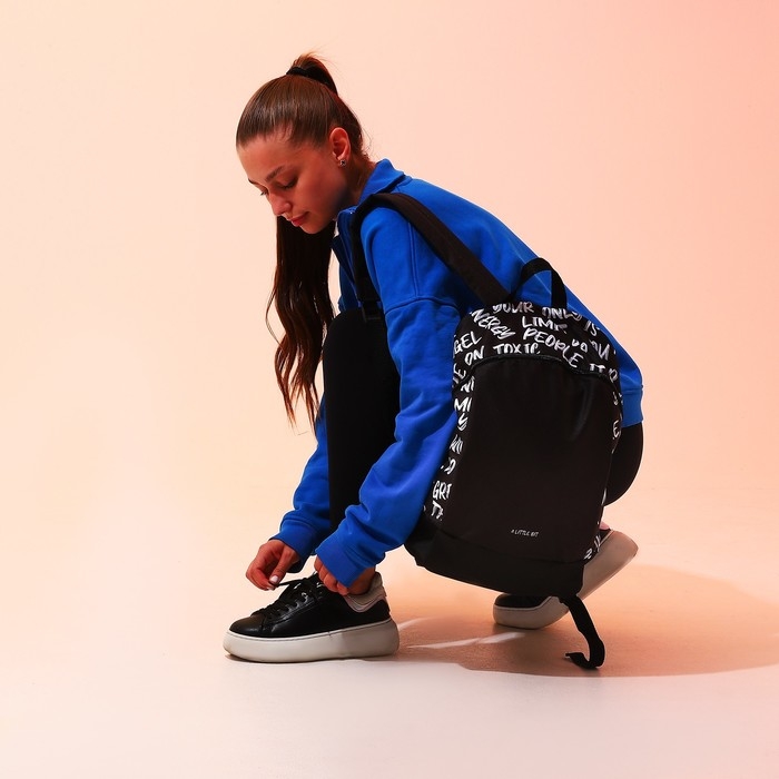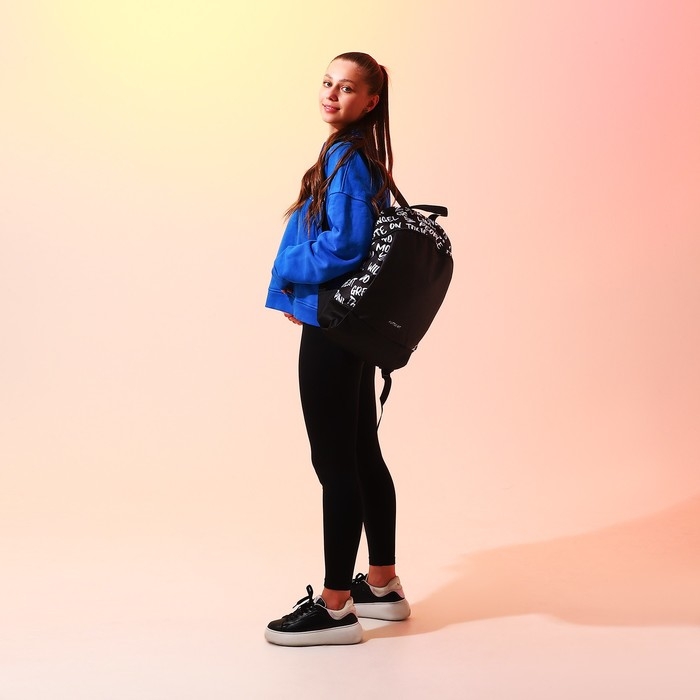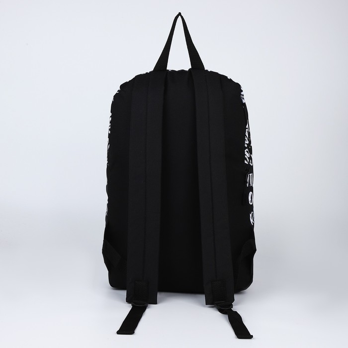Рюкзак школьный текстильный «Надписи», 46х30х10 см, вертикальный карман, цвет чёрный