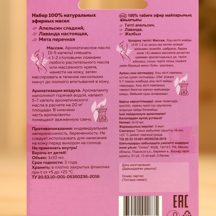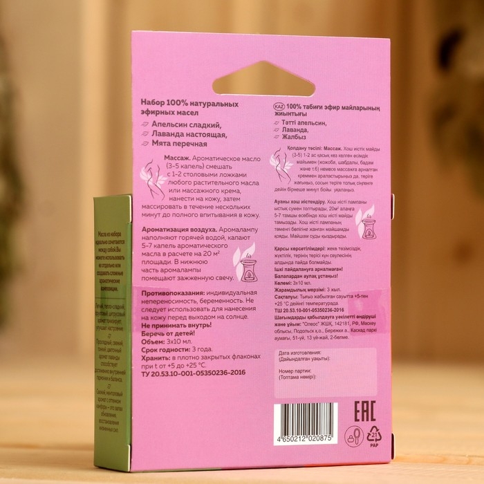 Набор 100% натуральных эфирных масел "Апельсин, лаванда, мята перечная"
