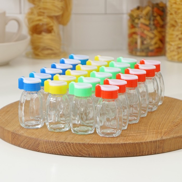 Набор стеклянных солонок Доляна «Грани», 30 мл, 3,5×7 см, 24 предмета, цвет МИКС